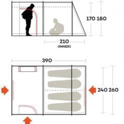 Palo veranda: precollegato in lega di alluminio tem-prato 7001 T6 – diametro 8,5 mm Ampia veranda anteriore. Abside posteriore. Cuciture nastrate. Tiranti, Cuffie di ven-tilazione. Regolazione nastri di base con fibbie di alluminio. Asole agli angoli per fissare la tenda con picchetti o altri sistemidi ancoraggio.